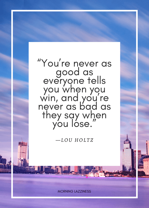 10. “You’re never as good as everyone tells you when you win, and you’re never as bad as they say when you lose.” – Lou Holtz