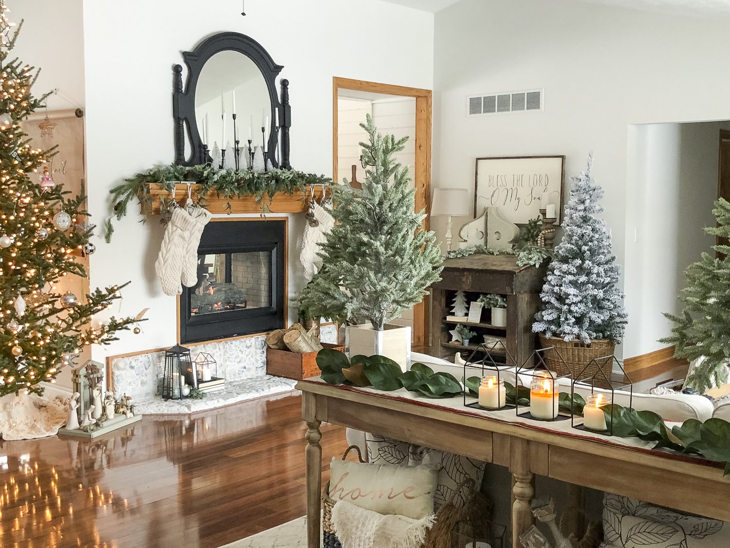 I love adding different kinds of texture to my décor. I am all for finding unique wood pieces such as little Christmas trees, reindeer, signs, or old wood boxes to put mini faux pine trees in. I often search for thrift stores and antique stores to find a lot of these items, but you can absolutely find great pieces at regular retail stores as well.