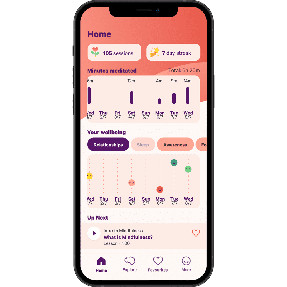 Stop, Breathe & Think keeps track of how you’re feeling before each session. Based on the input that you’ve given, the app will suggest guided meditations. Users can easily track their capabilities and record their emotions, both before and after the Meditation process. You will also find helpful insights on the total meditation time and other statistics.