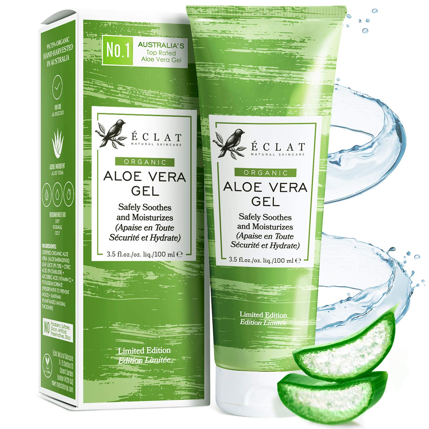 This product is 99.75% organic, from cold-pressed, superior filtered aloe. Packed with the highest potency of fresh aloe, rich with vitamins, minerals, proteins, and enzymes for healthy and hydrated skin. It absorbs quickly without leaving sticky residues.