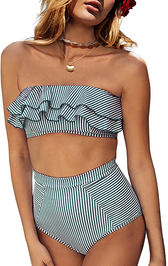 Planning a trip to Hawaii? This Bandeau RuffleTop Striped Swimsuit will make you look chic during a beach vacation. Featuring the latest style, it’s easy to pull off and immensely comfortable to wear. Its attractive design makes you look adorable.
