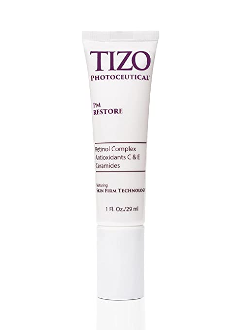 PM Restore visibly corrects signs of aging by reducing the appearance of fine lines and wrinkles with little to no irritation. TIZO® PM Restore helps even out pigmentation irregularities and smoothness while improving skin firmness and texture. Formulated with antioxidants to protect against free radicals and initial UV damage.