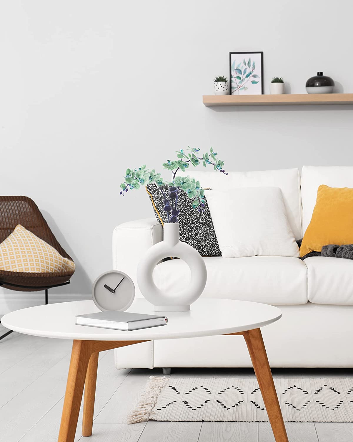 This centerpiece floral vase projects exquisite craftsmanship. The Donut Design is a superior piece of artwork and adds a modern vibe to your room. You can add artificial flowers to this standalone decor piece. This stylish home decor piece is perfect to place in your living room, bedroom, dining room table, conference room, etc.ย