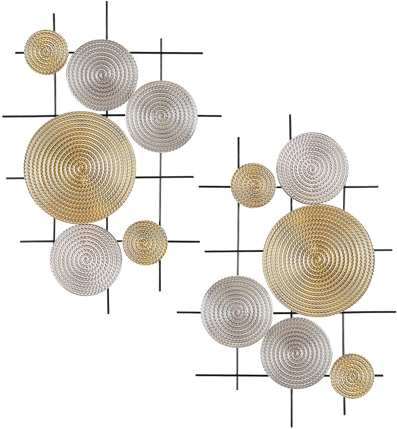 These Silver and Gold Modernist Floating Circles are sure to brighten up your arena. This unique sculptural art piece is eye-catching and unique. Easy to assemble, get your hands on these to level up your aesthetics.