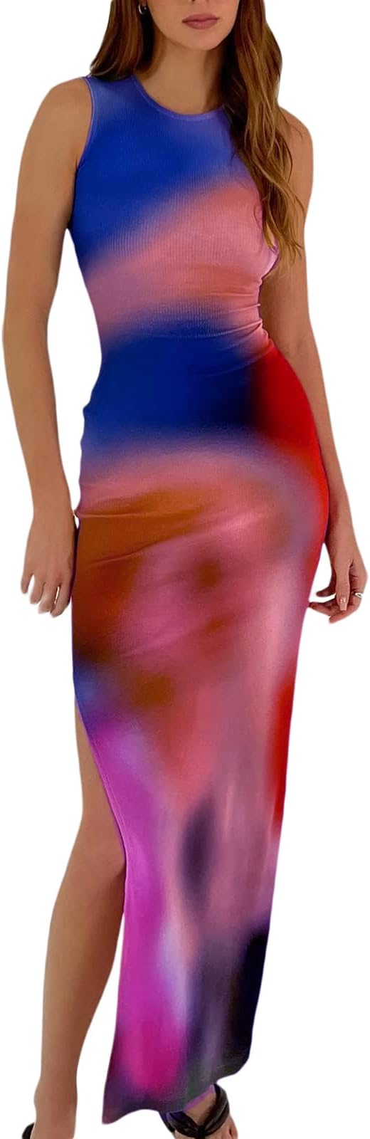 Women Casual Tie Dye Print Sleeveless Bodycon