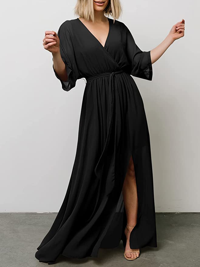 This versatile kimono maxi dress features a wrap V neck top,3/4 oversized sleeve, and an elastic waist with a belt. It fits perfectly to your summer needs – be it a vacation or a beach party. Affordable, high quality, and long-lasting – this is definitely one of the best options if you are looking for a flattering maxi dress.