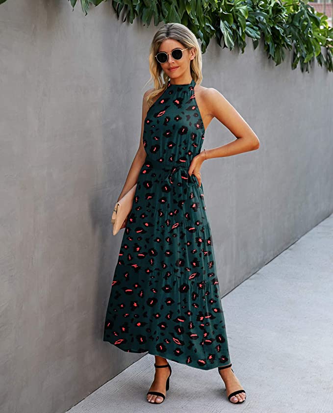 PRETTYGARDEN Women’s Casual Halter Neck Maxi Dress