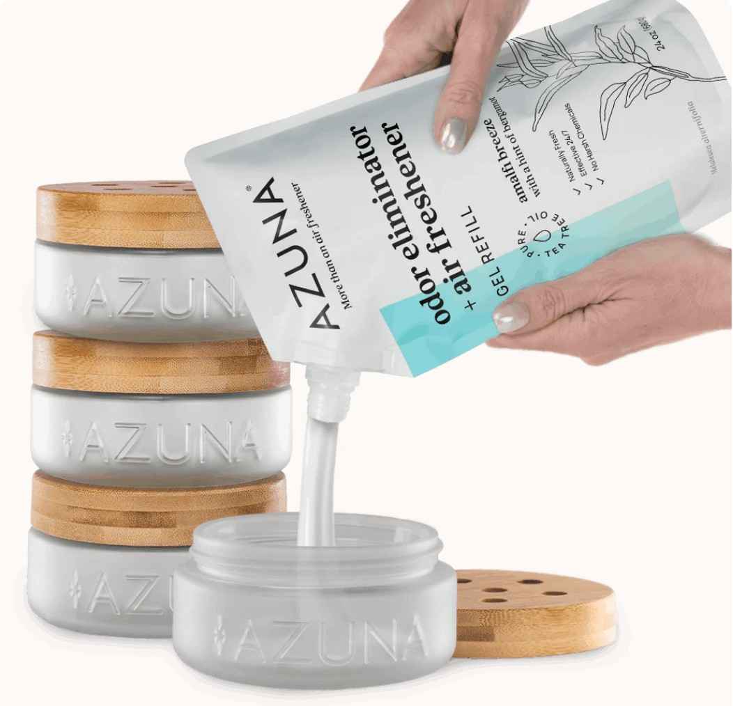 This is perfect for clearing any unwanted bathroom smells to create a relaxing and luxe environment with the Azuna Air Purifier and I love the fact that it’s an all-natural odor eliminator that uses the powerful properties of tea tree oil to effectively revitalize the air and neutralize odors at their source. Azuna comes in a gel form that you fill in a luxe glass jar that gives an aesthetically pleasing answer to those tough smells.