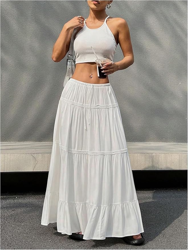 I never expected to love a skirt so much, but the Women Maxi Skirt with Ruffle Hem changed that for me. From the moment I tried it on, I was obsessed. The lightweight fabric feels soft against my skin, and the drawstring elastic waist makes it easy to slip on and off while staying perfectly in place.