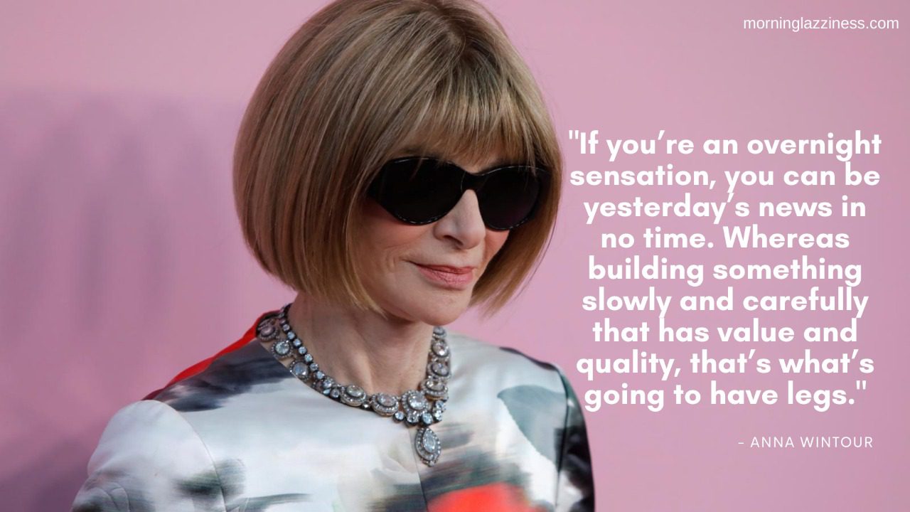 “If you’re an overnight sensation, you can be yesterday’s news in no time. Whereas building something slowly and carefully that has value and quality, that’s what’s going to have legs.” –Anna Wintour