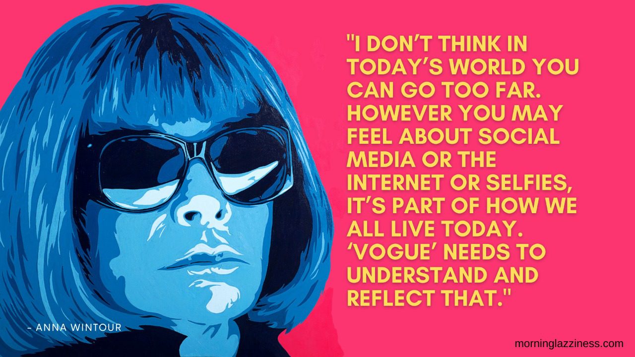 “I don’t think in today’s world you can go too far. However you may feel about social media or the Internet or selfies, it’s part of how we all live today. ‘Vogue’ needs to understand and reflect that.” –Anna Wintour