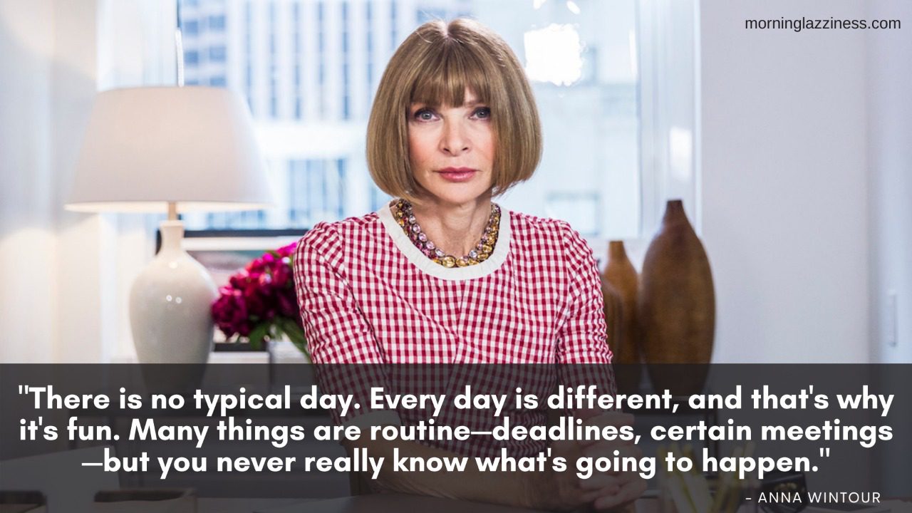 “There is no typical day. Every day is different, and that’s why it’s fun. Many things are routine—deadlines, certain meetings—but you never really know what’s going to happen.” –Anna Wintour