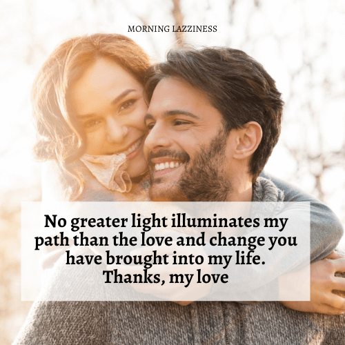 5. “No greater light illuminates my path than the love and change you have brought into my life. Thanks, my love.”