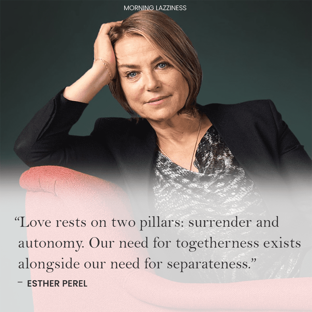 “Love rests on two pillars: surrender and autonomy. Our need for togetherness exists alongside our need for separateness.” – Esther Perel