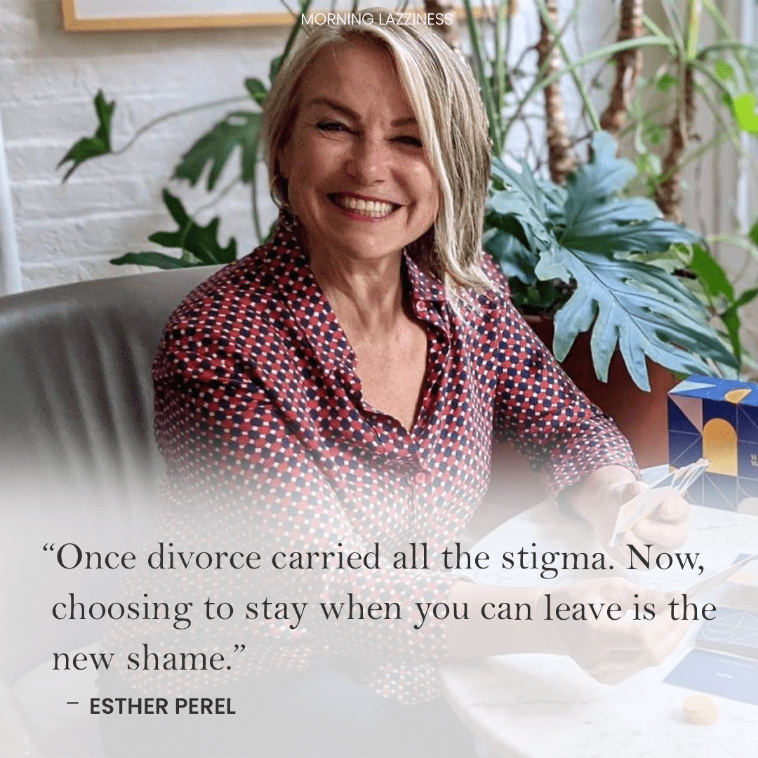 “Once divorce carried all the stigma. Now, choosing to stay when you can leave is the new shame.” – Esther Perel