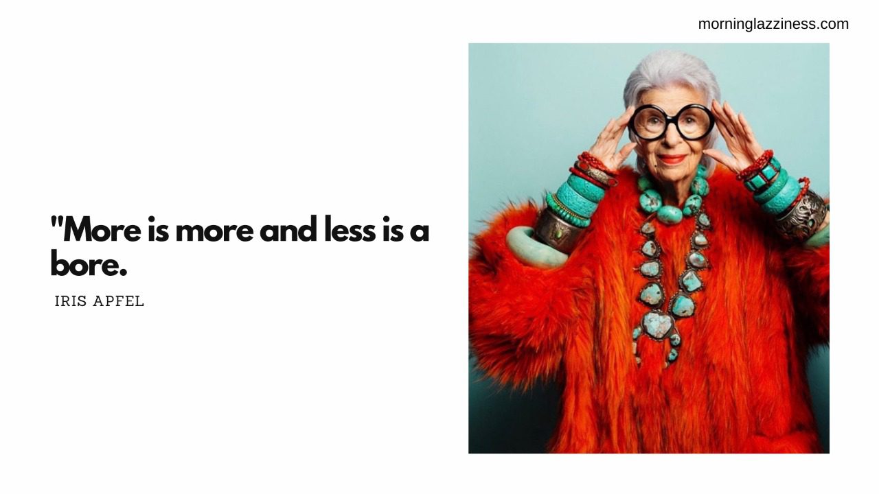 “When the fun goes out of dressing, you might as well be dead. You need to pursue your own fancy. – Iris Apfel