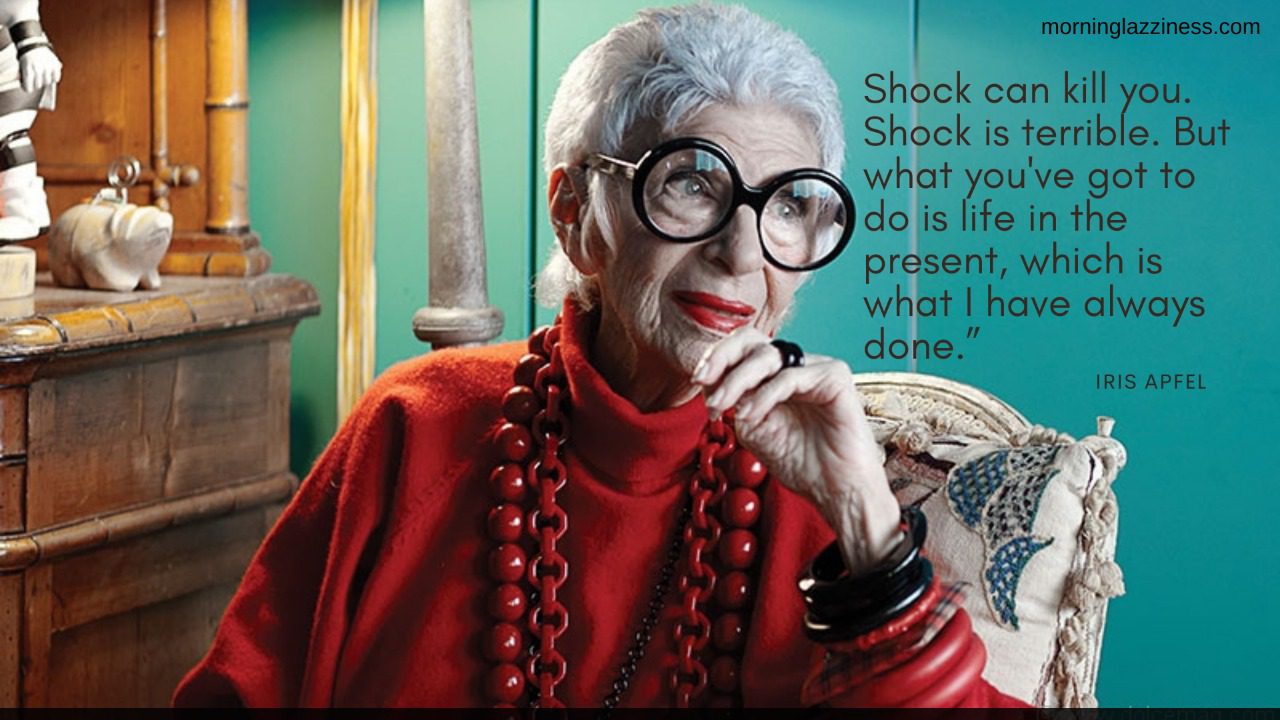 “Shock can kill you. Shock is terrible. But what you’ve got to do is life in the present, which is what I have always done.” – Iris Apfel