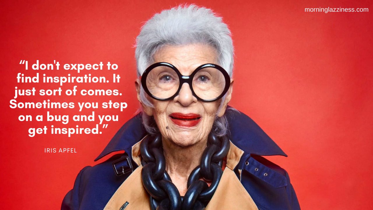 “I don’t expect to find inspiration. It just sort of comes. Sometimes you step on a bug and you get inspired.” – Iris Apfel