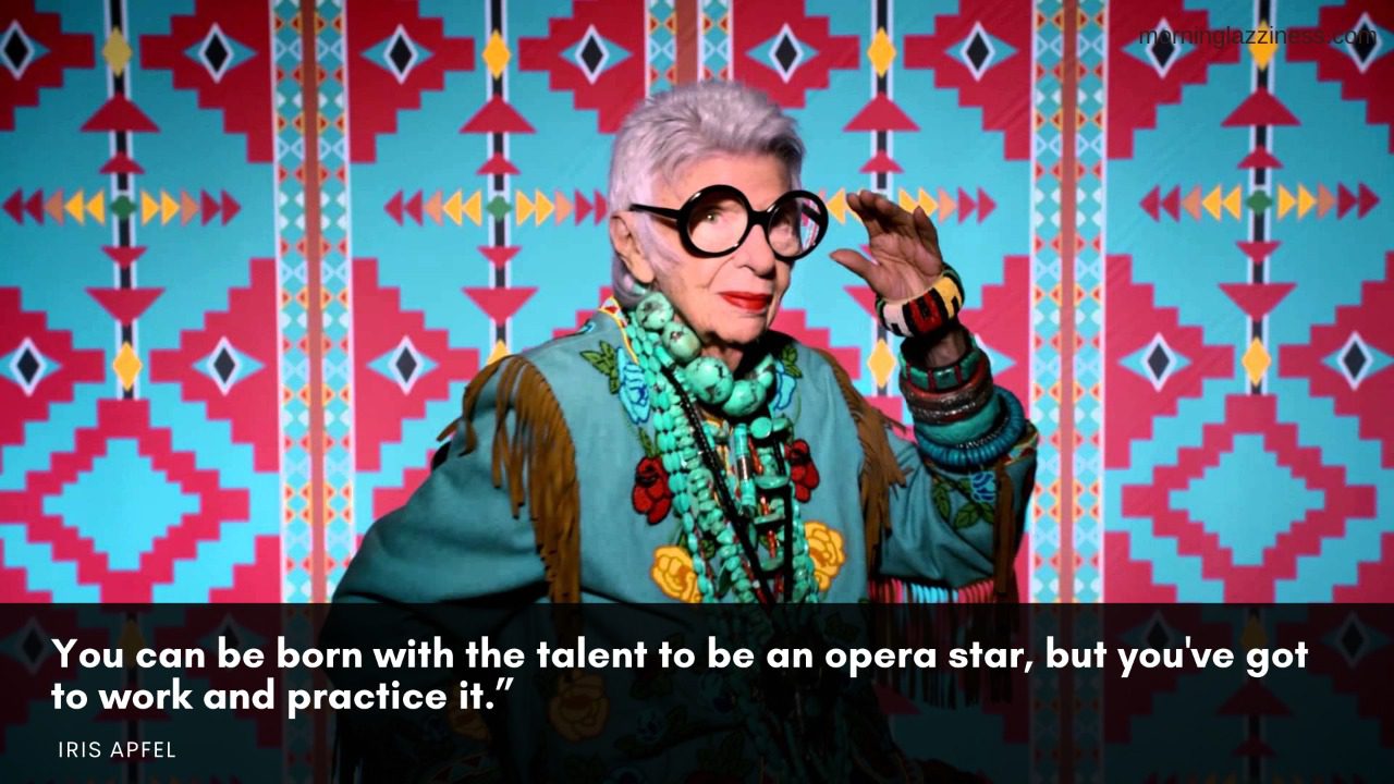 “You can be born with the talent to be an opera star, but you’ve got to work and practice it.” – Iris Apfel