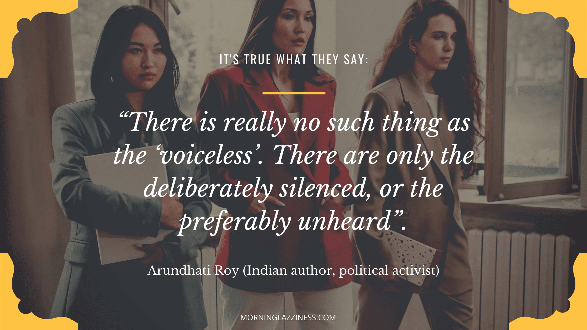 5. “There is really no such thing as the ‘voiceless’. There are only the deliberately silenced, or the preferably unheard”. – Arundhati Roy (Indian author, political activist)
