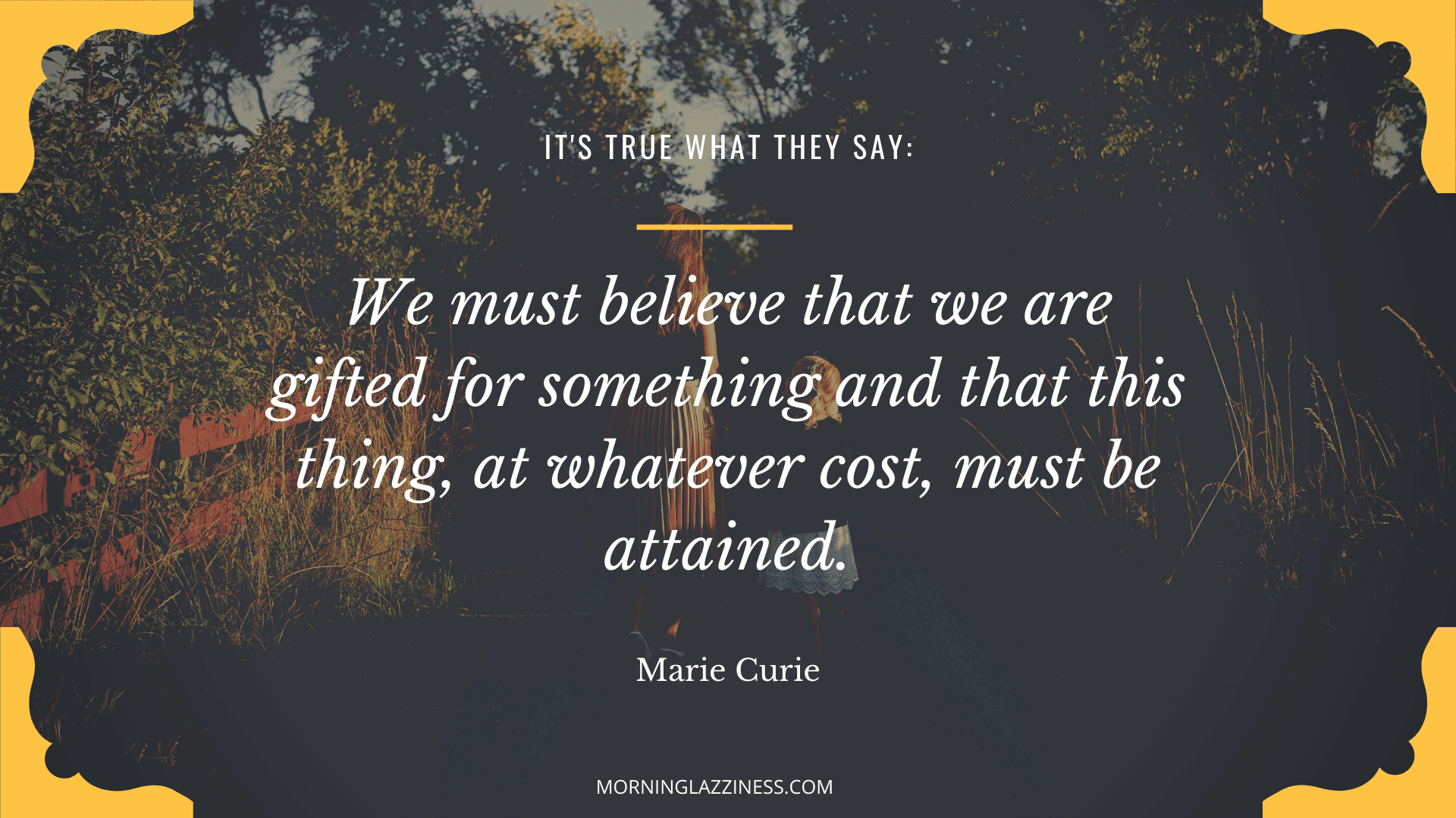 23. “We must believe that we are gifted for something and that this thing, at whatever cost, must be attained.” –Marie Curie
