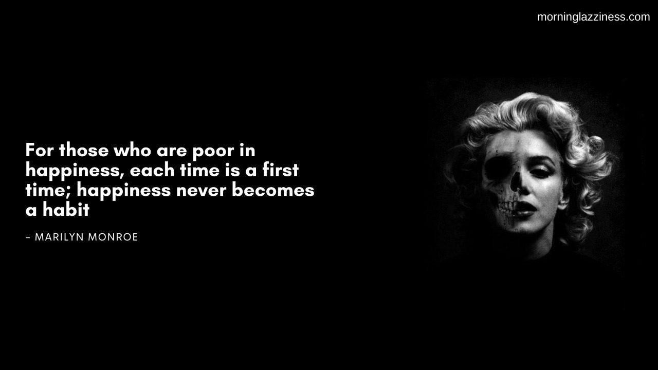 “For those who are poor in happiness, each time is a first time; happiness never becomes a habit.” -Marilyn Monroe