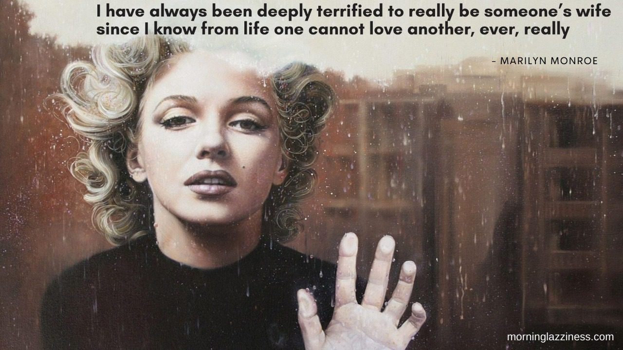 “I have always been deeply terrified to really be someone’s wife since I know from life one cannot love another, ever, really.” -Marilyn Monroe