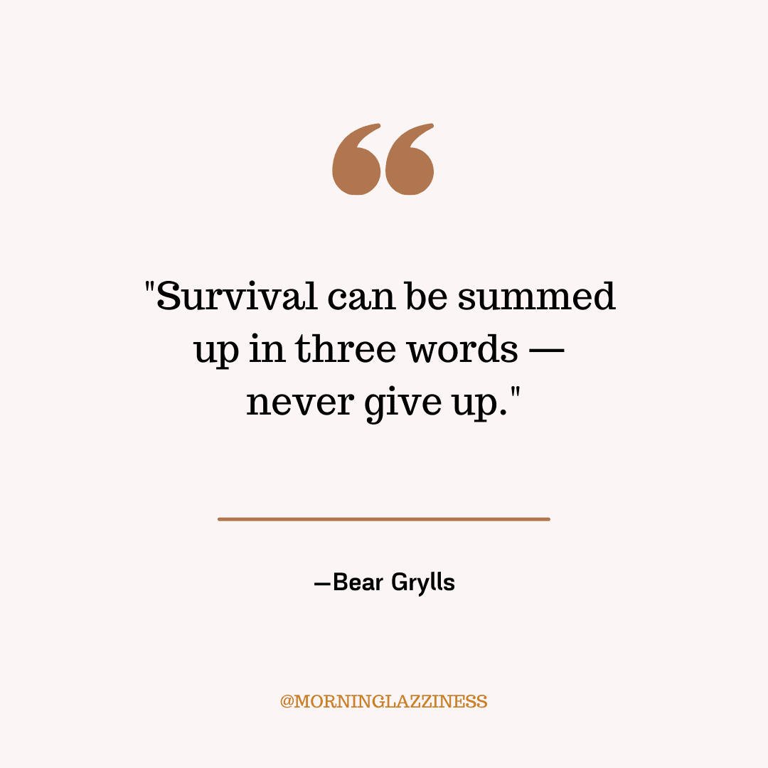 33.”Survival can be summed up in three words — never give up.” –Bear Grylls