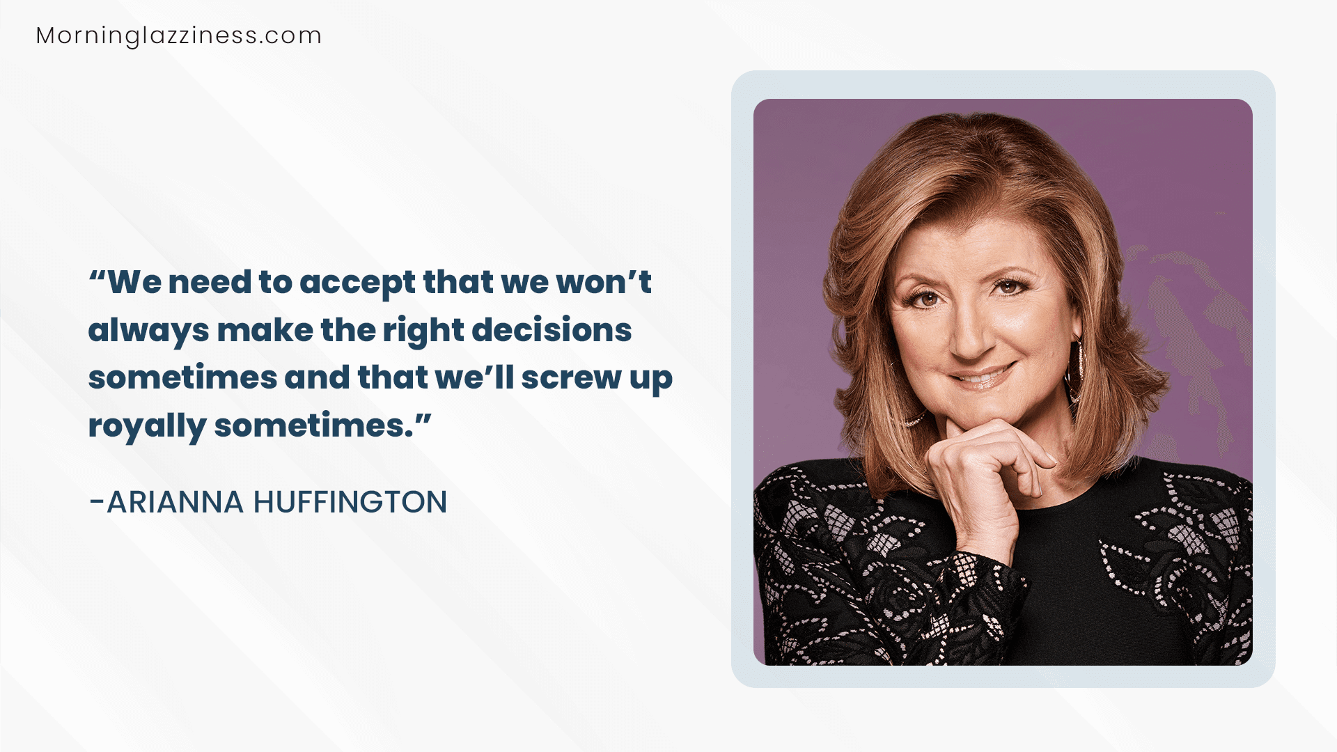 “We need to accept that we won’t always make the right decisions sometimes and that we’ll screw up royally sometimes.” – Arianna Huffington