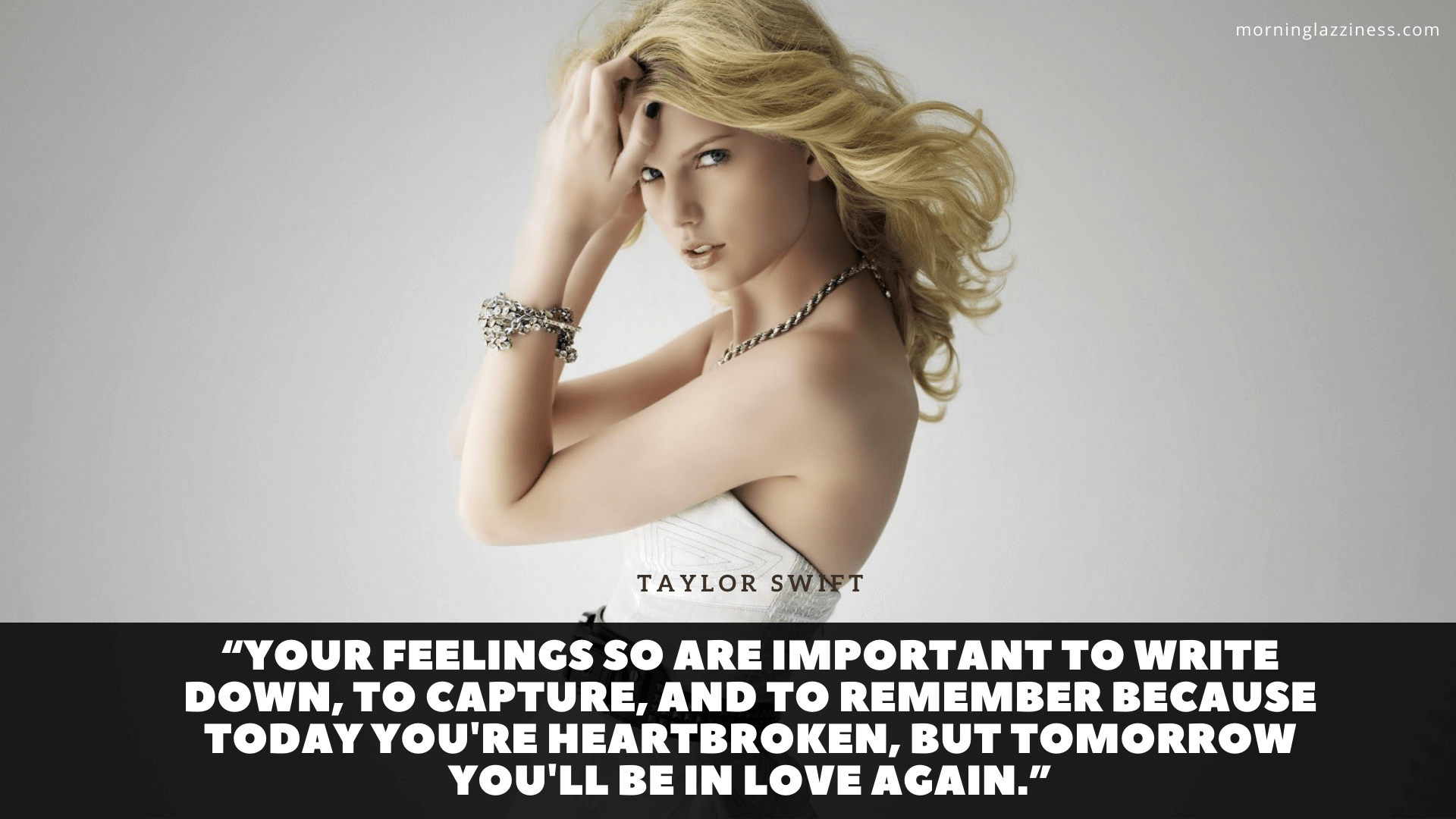 “Your feelings so are important to write down, to capture, and to remember because today you’re heartbroken, but tomorrow you’ll be in love again.” ― Taylor Swift