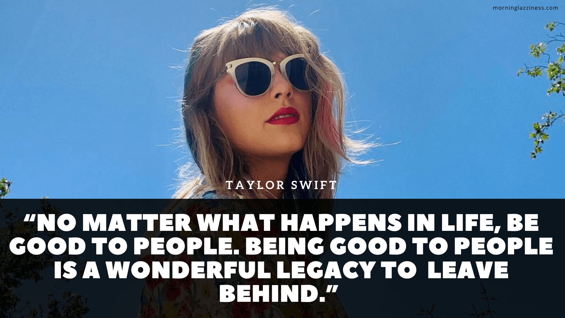 “No matter what happens in life, be good to people. Being good to people is a wonderful legacy to  leave behind.” ―Taylor Swift