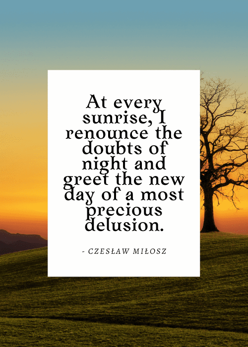 “At every sunrise, I renounce the doubts of night and greet the new day of a most precious delusion.”- Czesław Miłosz
