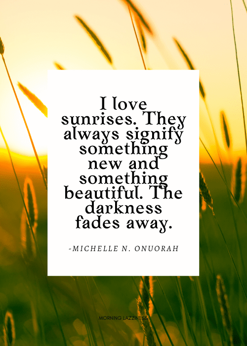 “I love sunrises. They always signify something new and something beautiful. The darkness fades away.”- Michelle N. Onuorah