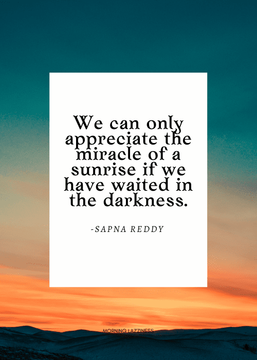 “We can only appreciate the miracle of a sunrise if we have waited in the darkness.”- Sapna Reddy