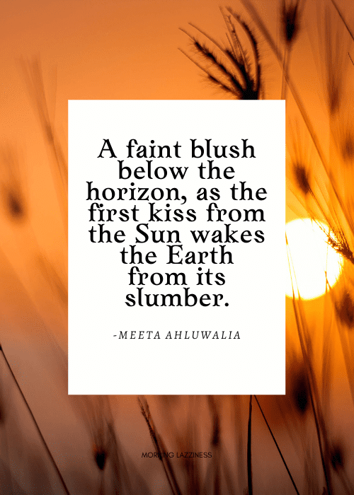 “A faint blush below the horizon, as the first kiss from the Sun wakes the Earth from its slumber.” – Meeta Ahluwalia