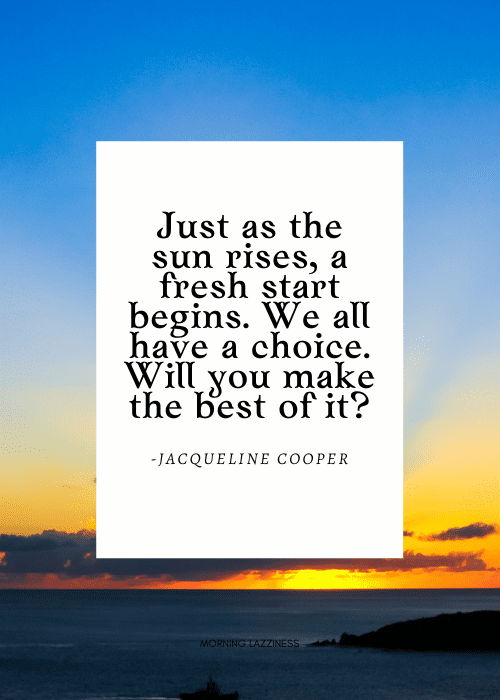 “Just as the sun rises, a fresh start begins. We all have a choice. Will you make the best of it?” – Jacqueline Cooper