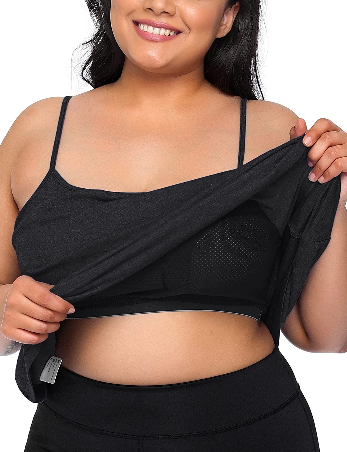 Easily adjustable spaghetti straps which allow you to choose ideal placement, very convenient camisoles for women. Plus size cami with a built-in bra made out of stretchy, lightweight, breathable, moisture-wicking fabric, soft to the touch.