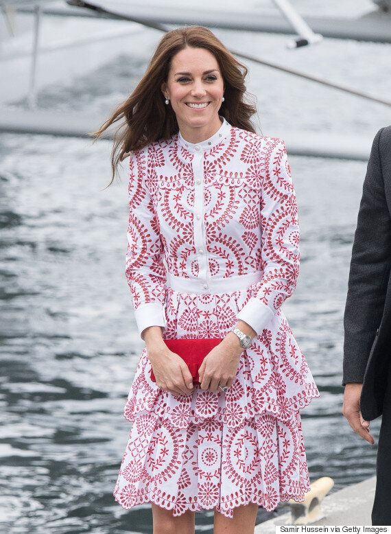 Kate wore a $7,495 red and white McQueen broderie anglaise dress during her 2016 tour, a custom piece with scalloped edges and intricate details.