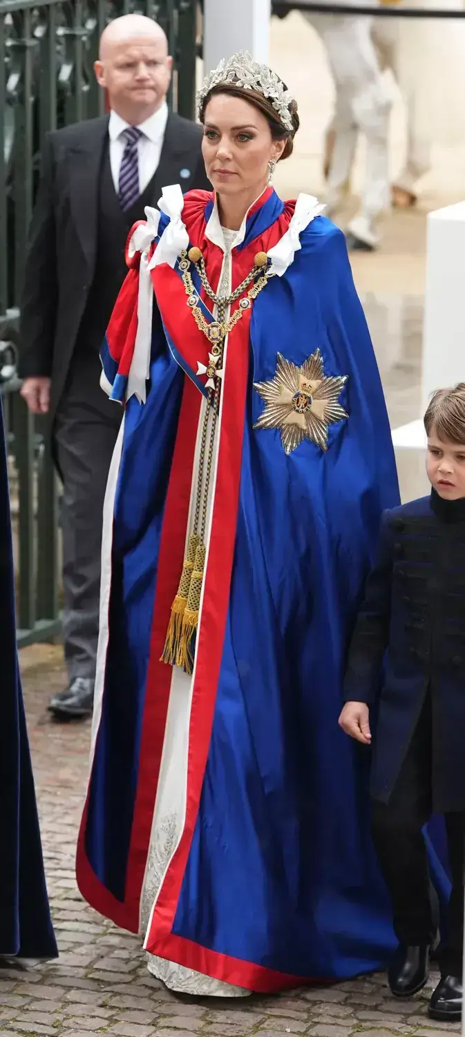Kate turned heads in a polished burgundy suit styled with a pink blouse and sophisticated handbag.