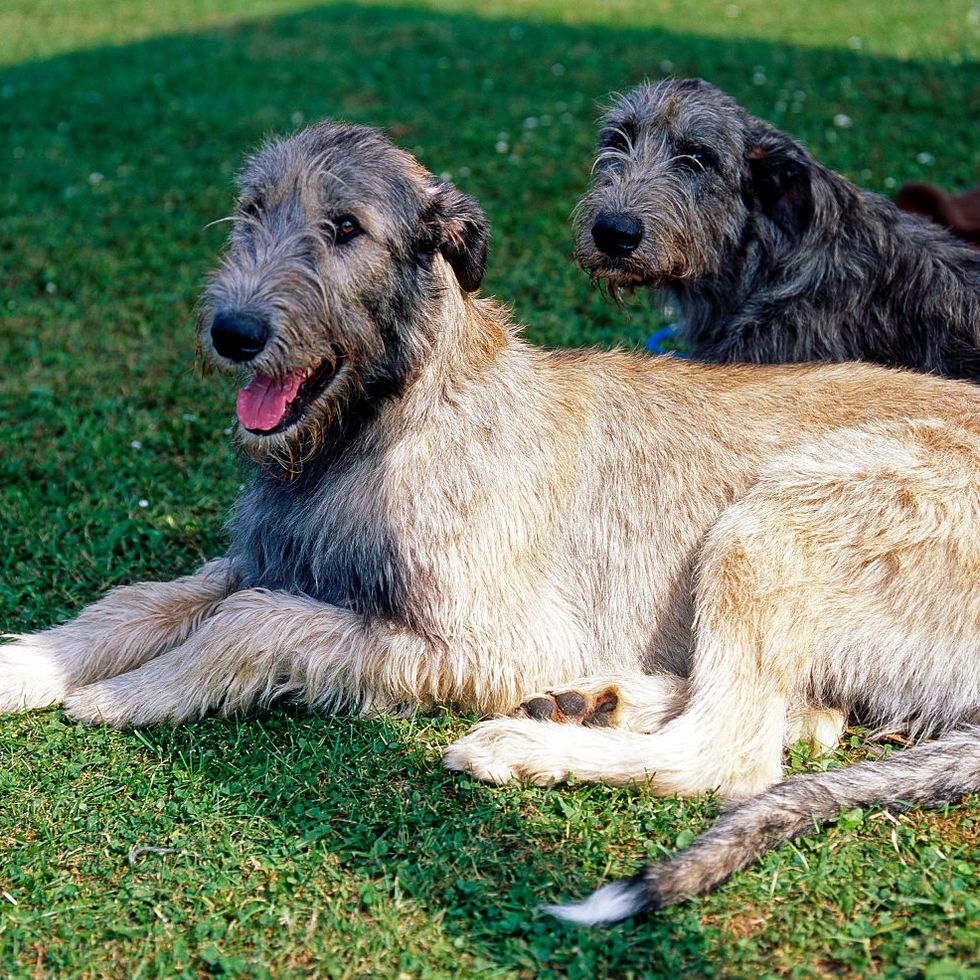 The majestic Irish Wolfhound can stand at an impressive height of 34 inches or more. These gentle giants were originally bred for hunting wolves.