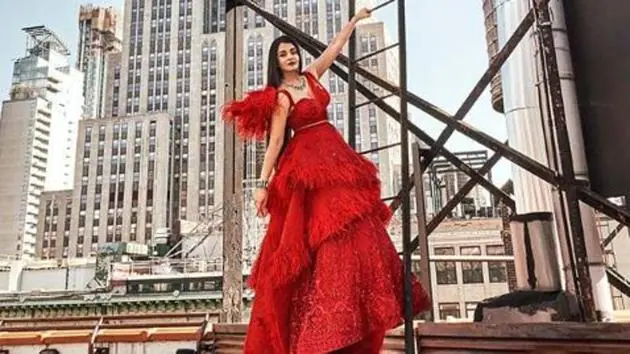 In 2015, Aishwarya wore this elegant and graceful off-shoulder burgundy gown.