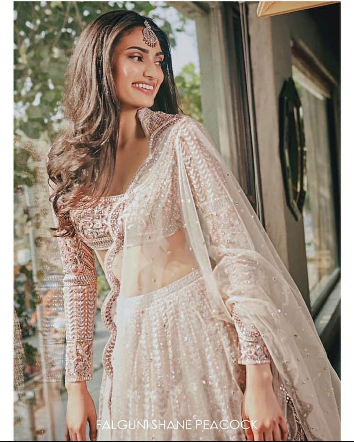 Athiya looks bewitching in this pristine mirror lehenga; she catches all our hearts with her beautiful smile.