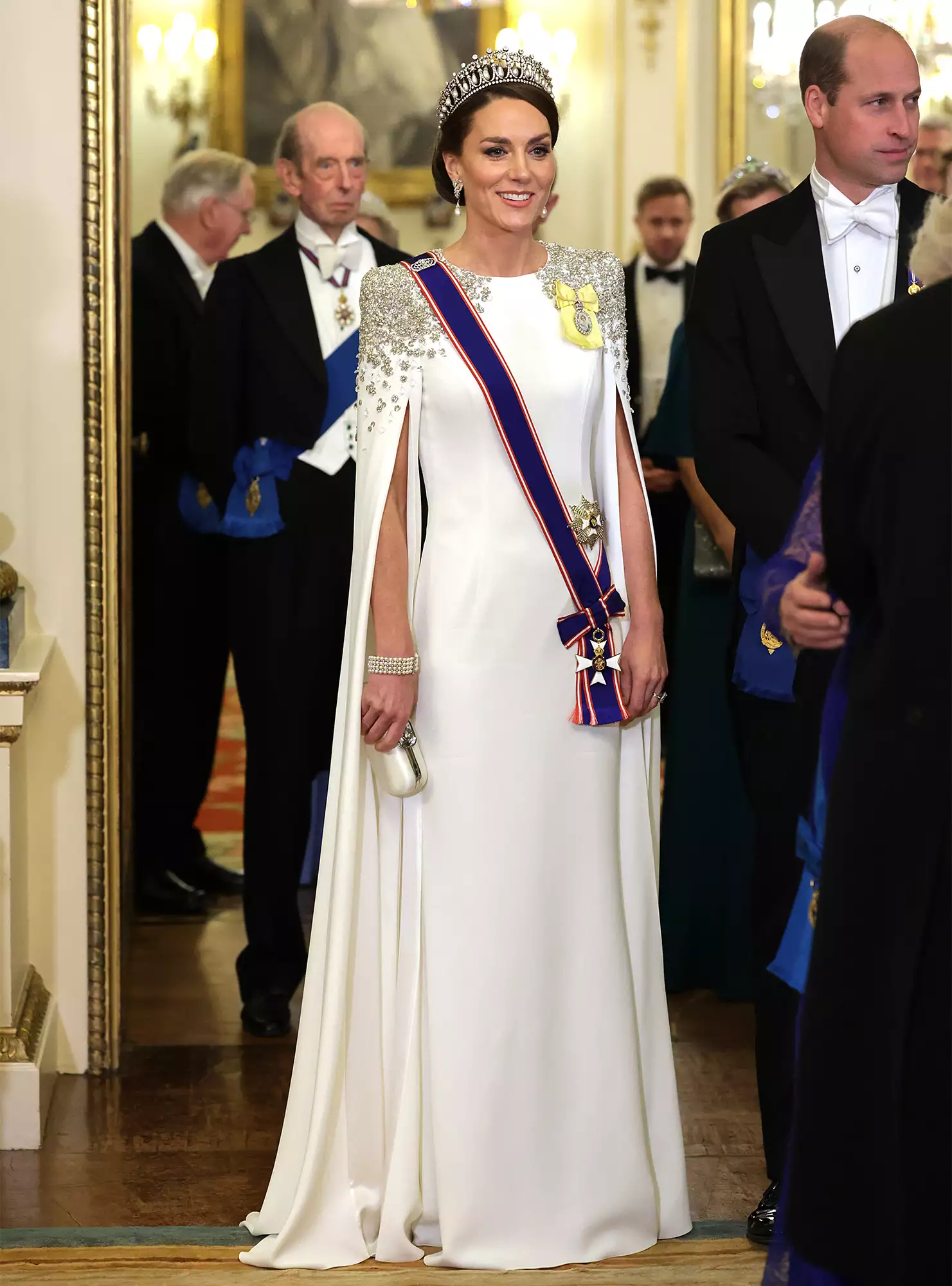 Kate looks spectacular in a white dress adorned with the Tiara and diamonds.