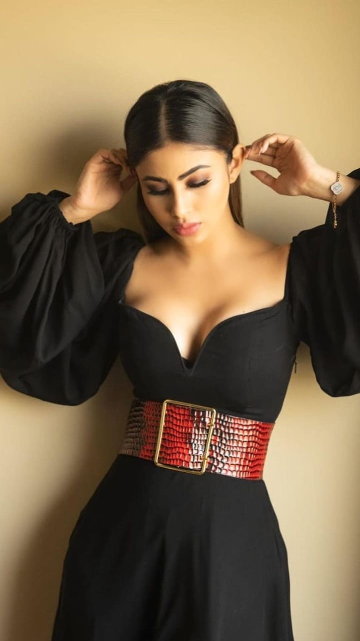 Mouni looks sophisticated and super glamorous in a twisted messy hairdo; this hairstyle adds glam to your entire look.