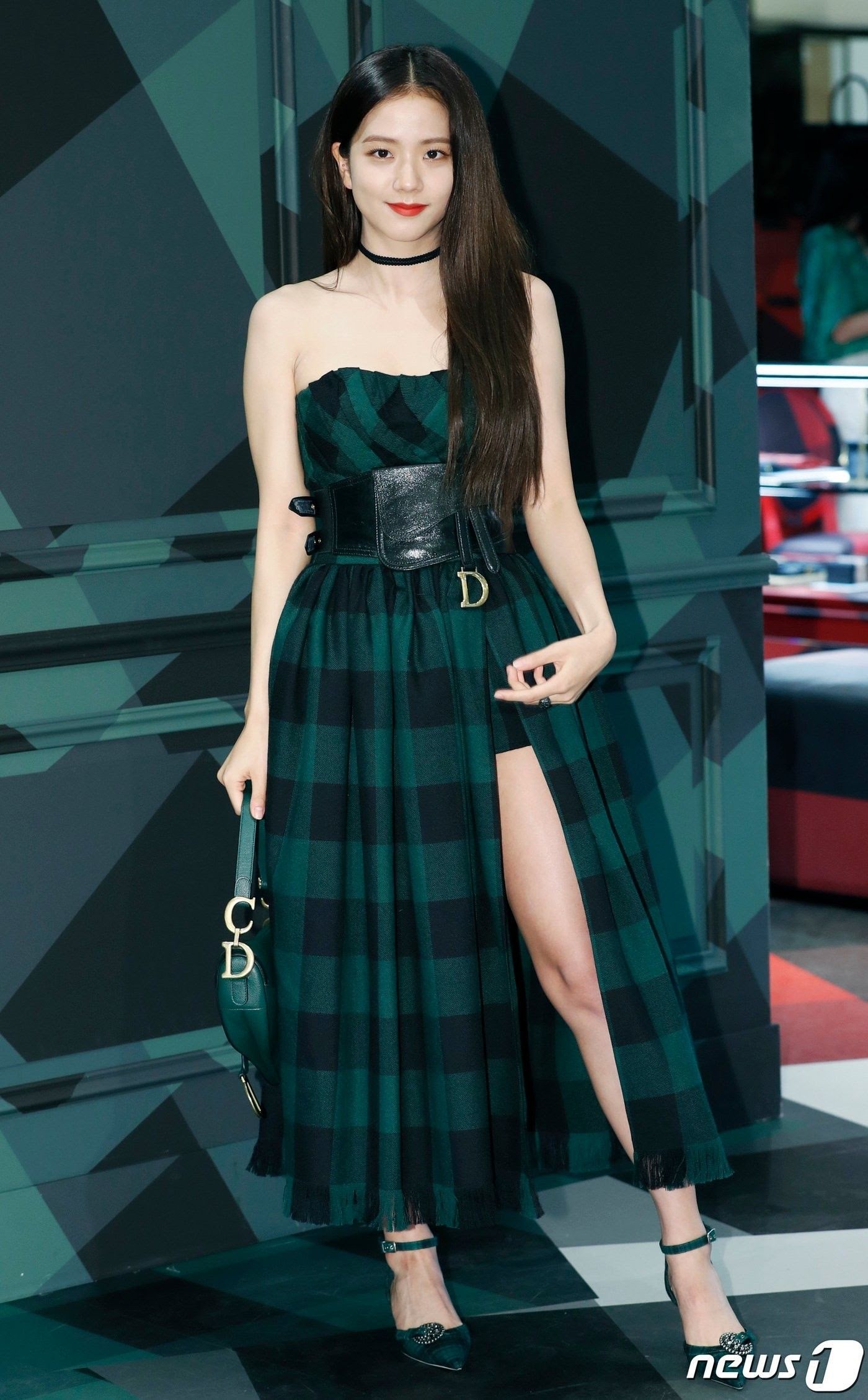 The singer slays in an off-shoulder high-slit Dior green dress.