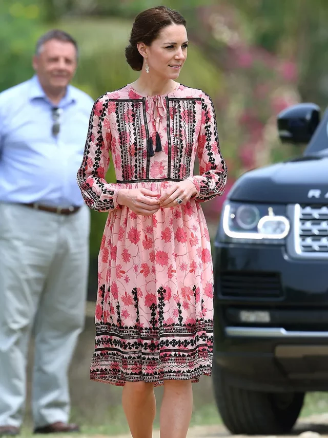 Kate looked classy in a pink dress, proving that simple prints can make a bold statement.