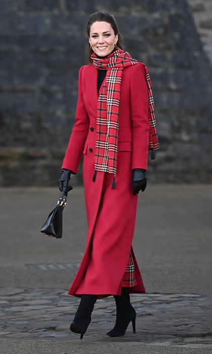 The Princess is giving the complimentary festive look; she completed the look with a matching tartan scarf, black clutch and black high heels.