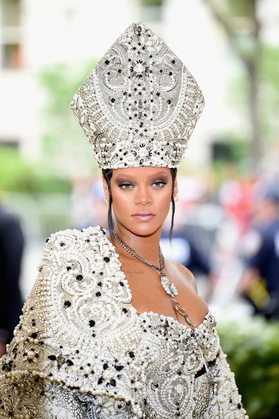 At the 2018 "Heavenly Bodies" Met Gala, Rihanna's striking red-carpet ensemble was complemented by an equally impressive bishop's hat.