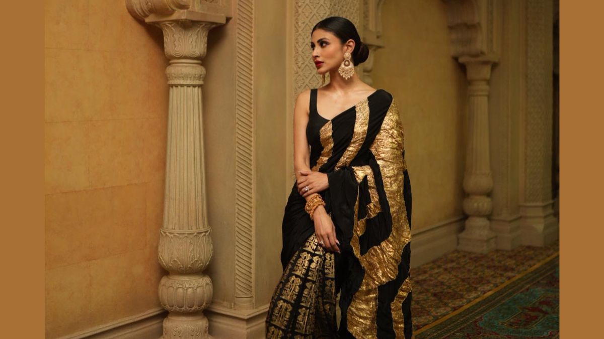 Mouni stunned everyone in this black-golden saree; she looked breathtakingly gorgeous.