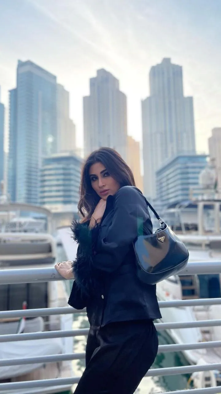 The epitome of grace, Mouni paired her classy black handbag when she posed for the paparazzi.